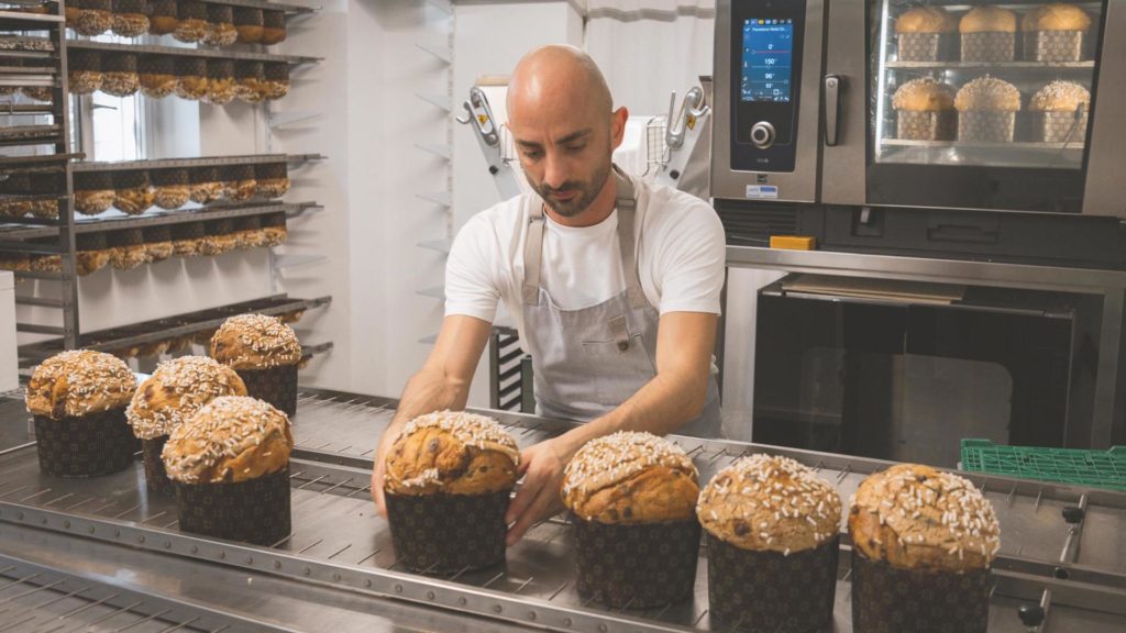 Zwanzig Panettoni finden in dem zirka einen Quadratmeter Stellraum benötigenden Gerät Platz. Für den rund 35 Minuten dauernden Backprozess nutzt Ariano einen selbst definierten Garpfad. Ein mit sechs Sensoren ausgerüsteter Kerntemperaturmesser kontrolliert die Temperatur im Innern der Panettoni, bei 96 Grad ist das Ziel erreicht. Anschliessend werden sie aufgespiesst und eine Nacht lang kopfüber aufgehängt, bevor sie verpackt werden und in den Verkauf gelangen. 2000 Panettoni in drei Sorten produziert Ariano pro Jahr. Aus dem gleichen Teig, aber mit einem angepassten Rezept, stellt Ariano auch die Spezialitäten Bauletti und Colomba her. Bauletti sind das ganze Jahr erhältlich, Colomba wird zu Ostern und Panettone zur Weihnachtszeit angeboten.